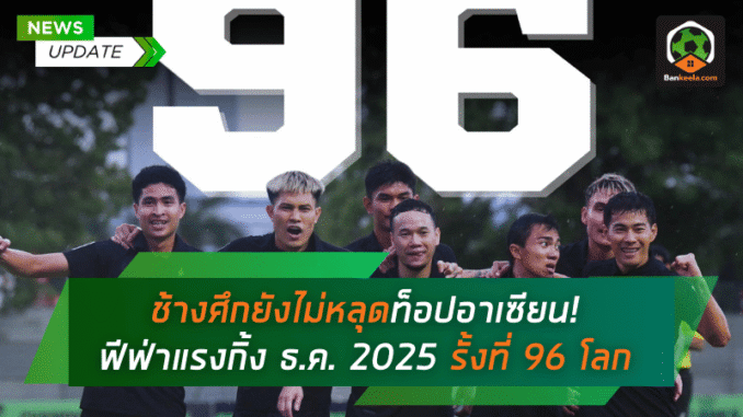 ช้างศึกยังไม่หลุดท็อปอาเซียน! ฟีฟ่าแรงกิ้ง ธ.ค. 2025 รั้งที่ 96 โลก ก่อนดวลเติร์กเมนิสถานชี้ชะตาคัดเอเชียนคัพ