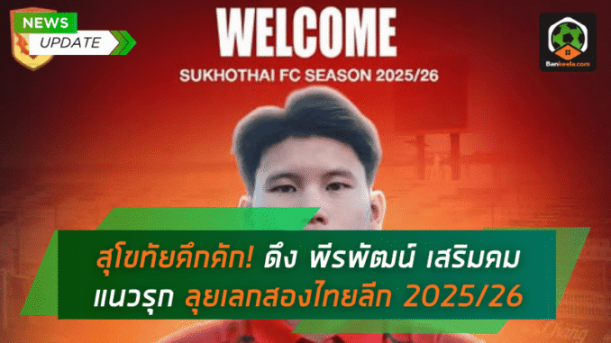 สถานีต่อไปของ สุโขทัย เอฟซี ในฤดูกาล 2025/26 ไม่ได้มีแค่การหนีตายหรือแย่งพื้นที่บนหัวตาราง แต่คือการเดินหน้าอัพเกรดเกมรุกให้ดุดันยิ่งกว่าเดิม ล่าสุด “ค้างคาวไฟ” บรรลุข้อตกลงคว้าตัว พีรพัฒน์ คำแพง กองหน้าวัย 24 ปี เข้ามาเป็นอาวุธใหม่สำหรับสู้ศึกเลกสองในรายการบีวายดี ซีไลออน ซิกส์ ลีกหนึ่ง พร้อมเตรียมขึ้นทะเบียนใช้งานในศึก ไทยลีก ทันทีที่ตลาดนักเตะเปิดใช้งานอย่างเป็นทางการ การเสริมทัพครั้งนี้ไม่ใช่แค่เติมจำนวน แต่คือการเพิ่มมิติให้แนวรุก ทั้งเรื่องความเร็ว การหาพื้นที่ และการจบสกอร์ในกรอบเขตโทษ ที่สุโขทัยต้องการอย่างชัดเจนจากผลงานในเลกแรก