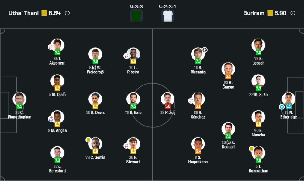 - 🔄 นาทีที่ 89 – อติคุณ มีถุ่ม ถูกส่งลงมาแทน ทิตาธร เพื่อเพิ่มความสดในช่วงทดเวลา