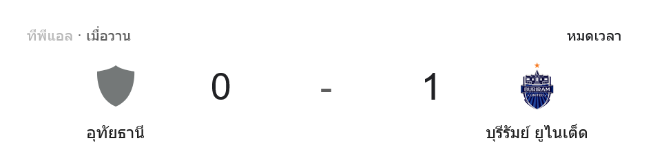 - ⏰ นาทีที่ 90+5 – ผู้ตัดสินเป่านกหวีดหมดเวลา อุทัยธานี เอฟซี แพ้ บุรีรัมย์ ยูไนเต็ด 0-1