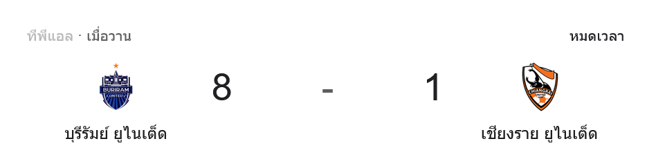 จาก : ผลบอลสด BYD SEALION 6 ลีกหนึ่ง ระหว่าง บุรีรัมย์ ยูไนเต็ด 8-1 เชียงราย ยูไนเต็ด วันนี้ 18/1/69 – บ้านกีฬา