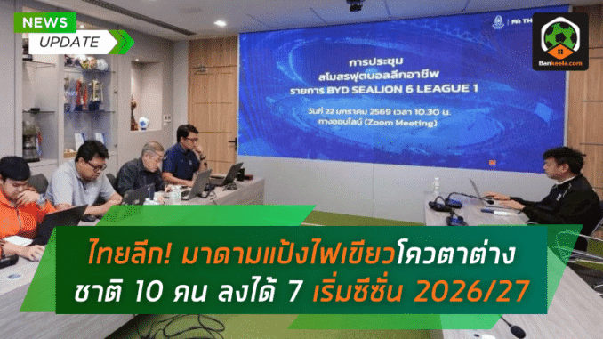 วงการลูกหนังไทยขยับครั้งสำคัญ เมื่อที่ประชุม ไทยลีก มีมติเห็นชอบปรับ โควตาต่างชาติ สำหรับฤดูกาล 2026/27 อนุญาตให้แต่ละสโมสรขึ้นทะเบียนแข้งนอกได้สูงสุด 10 คน แต่ลงสนามพร้อมกันได้ไม่เกิน 7 คนต่อแมตช์ ถือเป็นกติกาใหม่ที่เตรียมเปลี่ยนหน้าเกมการแข่งขันทั้งลีก และเพิ่มสีสันให้แฟนบอลได้ลุ้นดุเดือดมากขึ้นในทุกสัปดาห์