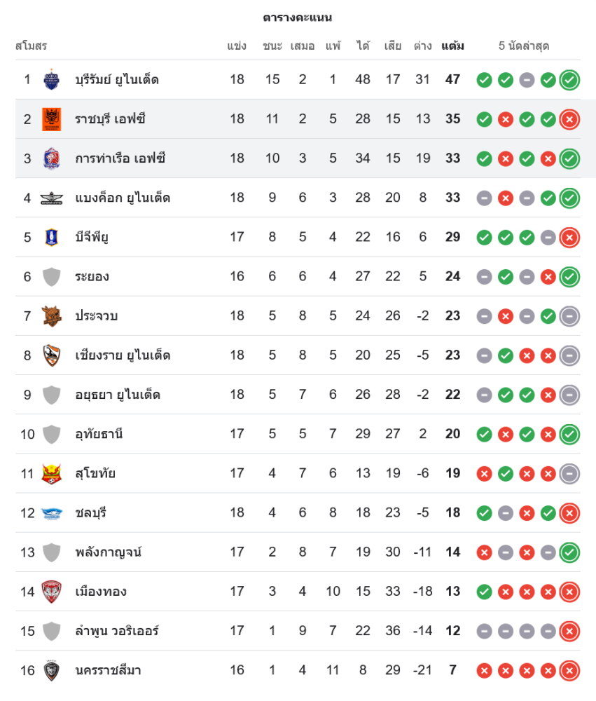 ด้านราชบุรี มี 35 คะแนนจาก 18 นัด แม้ยังยึดรองจ่าฝูงได้ แต่ฟอร์มช่วงหลังสะดุดหลายเกม แถมคู่แข่งกลุ่มหัวตารางทั้งแบงค็อก ยูไนเต็ด และบีจี ปทุมฯ ยังไล่จี้ไม่ห่าง ความพ่ายแพ้นัดนี้จึงเป็นสัญญาณเตือนว่าหากไม่รีบเค้นฟอร์มกลับมา อาจหลุดจากโซนลุ้นแชมป์ในไม่ช้า