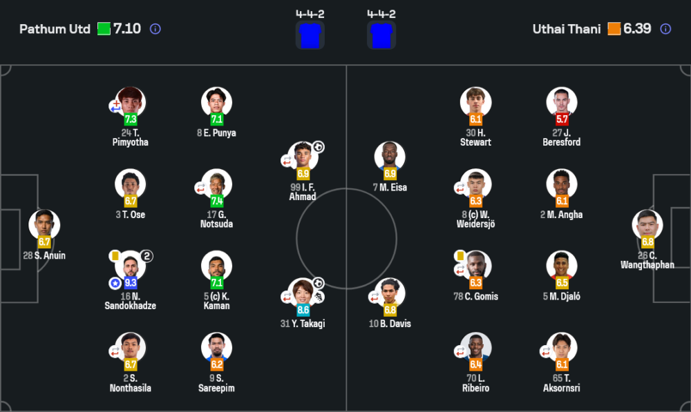 • ศิริมงคล รัตนภูมิ (6.4) ลงแทน เบนจามิน เดวิส นาที 82