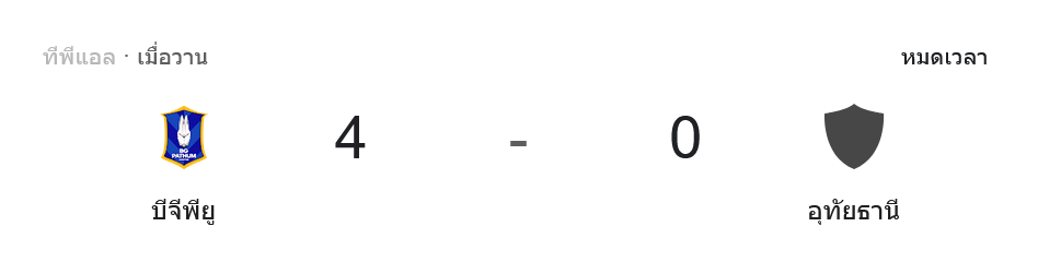 • ⏰ ทดเวลาบาดเจ็บ 4 นาที ก่อนจบเกมด้วยชัยชนะขาดลอยของบีจี ปทุม ยูไนเต็ด