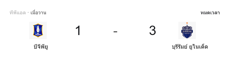 - 🔹 ทดเวลาครึ่งหลัง 10 นาที: บีจีพยายามโหมบุกแต่เจอแนวรับบุรีรัมย์ปิดเกมอย่างแน่นหนา ก่อนจบที่สกอร์ 1-3