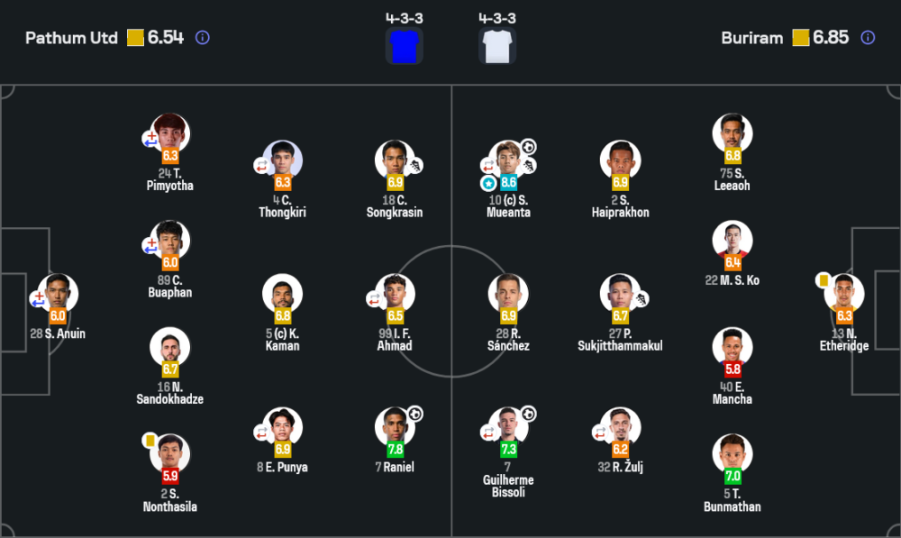 - วาริส ชูทอง (81) 7.0 – ลงนาที 25 แทน ธนวัฒน์ พิมพ์โยธา