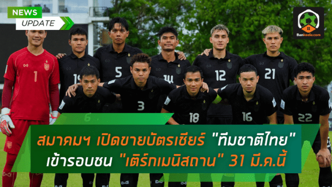 ห้ามพลาดตั๋วมาแล้ว! สมาคมฯ เปิดขายบัตรเชียร์ “ทีมชาติไทย” ชี้ชะตาเข้ารอบชน “เติร์กเมนิสถาน” 31 มี.ค.นี้