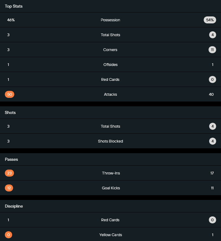 ตัวเลขหลังเกมสะท้อนรูปเกมได้ชัดเจน เชียงรายครองบอลได้ราว 46 เปอร์เซ็นต์ ขณะที่ประจวบถือบอลมากกว่าที่ 54 เปอร์เซ็นต์ แต่จุดที่น่าคิดคือเจ้าถิ่นมีโอกาสยิงเพียง 3 ครั้ง และทั้งหมดกลายเป็นลูกยิงที่โดนบล็อก ส่วนทีมเยือนยิง 4 ครั้ง และก็โดนบล็อกเช่นกัน ทว่าหนึ่งในนั้นคือจุดโทษที่เปลี่ยนเป็นประตูชัย ต่างจากลูกตั้งเตะที่ประจวบได้เตะมุมถึง 11 ครั้ง เทียบกับเชียงรายแค่ 3 ครั้ง แสดงให้เห็นว่าทีมเยือนสร้างแรงกดดันจากจังหวะเซตพีซได้มากกว่า เกมรุกของเจ้าถิ่นแม้จะมีการบุกเข้าใส่จนตัวเลขการขึ้นเกมแสดงไว้ที่ 50 ครั้ง มากกว่าประจวบที่ 40 ครั้ง แต่ส่วนใหญ่กลายเป็นการบุกติดบล็อกและจบไม่ลง ด้านวินัยเกมรับ เชียงรายมีใบแดงหนึ่งใบจากจอนาตา แวร์ซูรา ขณะที่ประจวบมีเพียงใบเหลืองของ นิก เทย์เลอร์ เท่านั้น สถิติเหล่านี้รวมกันแล้วทำให้เห็นว่า ประจวบใช้ความแน่นอนและความนิ่งเล่นงานเจ้าถิ่นจนจบเกม
