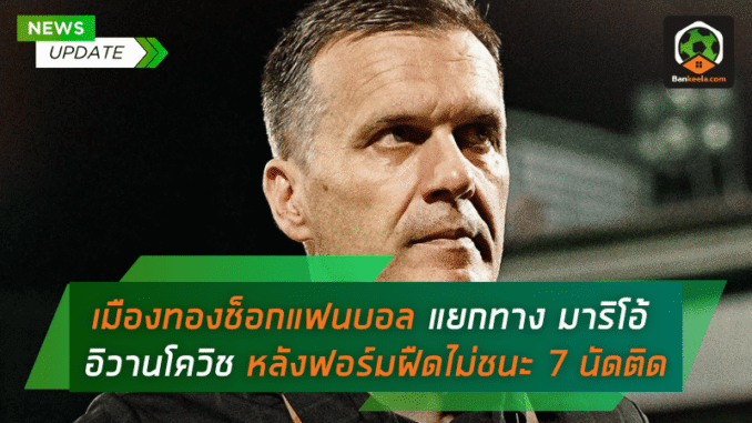 เมืองทอง ยูไนเต็ด ยืนยันแยกทางกับ มาริโอ้ อิวานโควิช ในตำแหน่งหัวหน้าผู้ฝึกสอนเป็นที่เรียบร้อย หลังทีมเจอสถานการณ์ผลงานไม่เป็นใจ ไม่ชนะติดต่อกันยาว 7 นัด นับตั้งแต่กุนซือรายนี้เข้ามารับงานคุมทัพ กิเลนผยองเลยต้องตัดสินใจ “เปลี่ยน” เพื่อหยุดความไหลของฟอร์มที่น่าหนักใจ