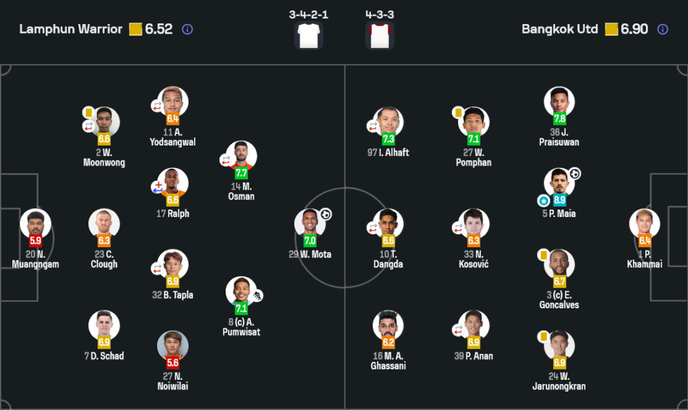 รายชื่อนักเตะตัวจริง คะแนน นักเตะโดดเด่น และการเปลี่ยนตัว