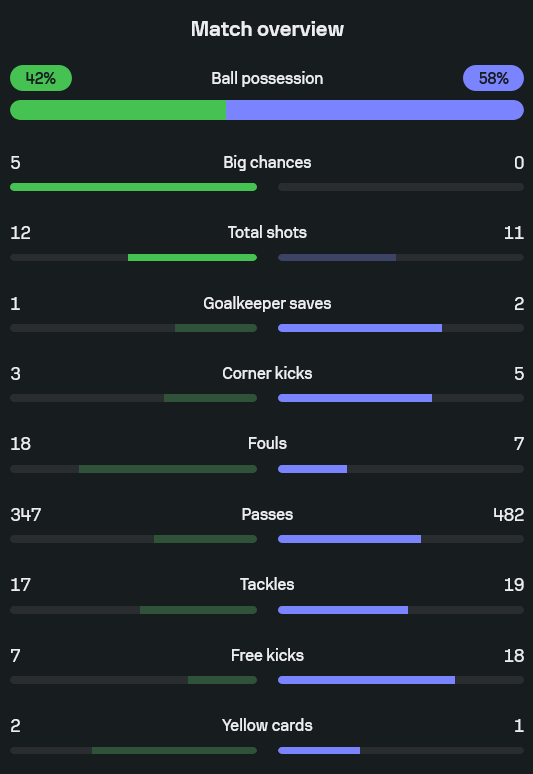 นาทีที่ 54 เกมมีดราม่าเล็กน้อย เมื่อ วิลเล่น โมต้า ยิงบอลเข้าประตูไปได้ แต่ VAR ตรวจสอบและชี้ว่าล้ำหน้า ทำให้ประตูถูกยกเลิก