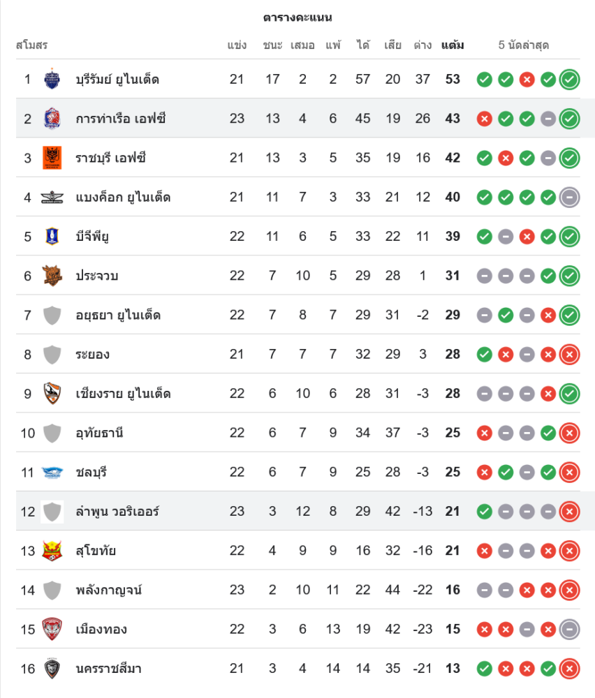 สถานการณ์ในตารางคะแนนไทยลีก 1