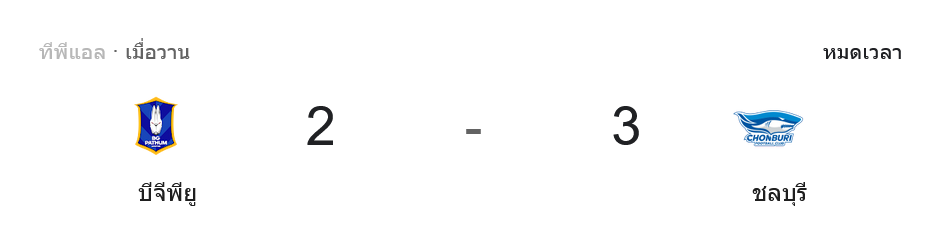 - ⚽ 90+3 เอกนิษฐ์ ปัญญา ยิงให้บีจีไล่มา 2-3