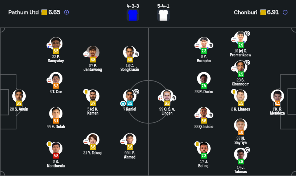- 90+1 ชยธร ทัพสุวรรณวนิช แทน กวินทร์ อินาซิโอ