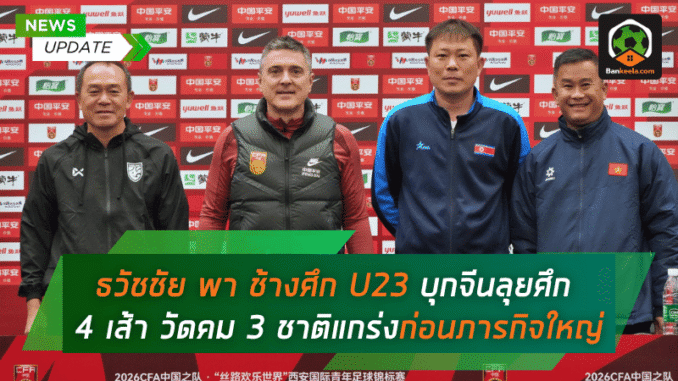“ธวัชชัย ดำรงอ่องตระกูล” กุนซือ ทีมชาติไทย U23 แถลงข่าวก่อนพาทีมลงแข่งขันฟุตบอลอุ่นเครื่อง 4 เส้า รายการ CFA Team China International Youth Tournament Xi’an ที่เมืองซีอาน ประเทศจีน ระหว่างวันที่ 25-31 มีนาคม 2569 โดยรายการนี้ถูกมองว่าเป็นอีกก้าวสำคัญของการเตรียมทีมก่อนลุยทัวร์นาเมนต์ใหญ่ในอนาคต