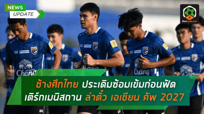 ทีมชาติไทย ลงฝึกซ้อมครั้งแรกเมื่อวันที่ 24 มีนาคม 2569 เวลา 17.00 น. ที่ BGPU Training Center 3 จังหวัดปทุมธานี ภายใต้การคุมทีมของ แอนโธนี ฮัดสัน เพื่อเตรียมความพร้อมก่อนเปิดบ้านพบ เติร์กเมนิสถาน ในศึก เอเชียน คัพ 2027 รอบคัดเลือก กลุ่มดี นัดที่ 6 วันที่ 31 มีนาคม 2569