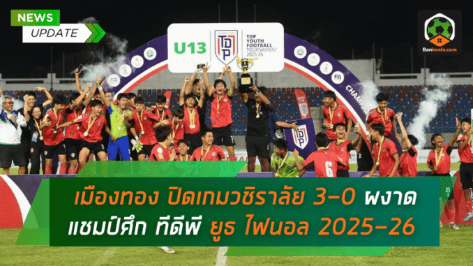 เมืองทองเด็กโหด ปิดเกมวชิราลัย 3-0 ผงาดแชมป์ศึก ทีดีพี ยูธ ไฟนอล 2025-26 รุ่น U13 แบบสุดเฉียบ