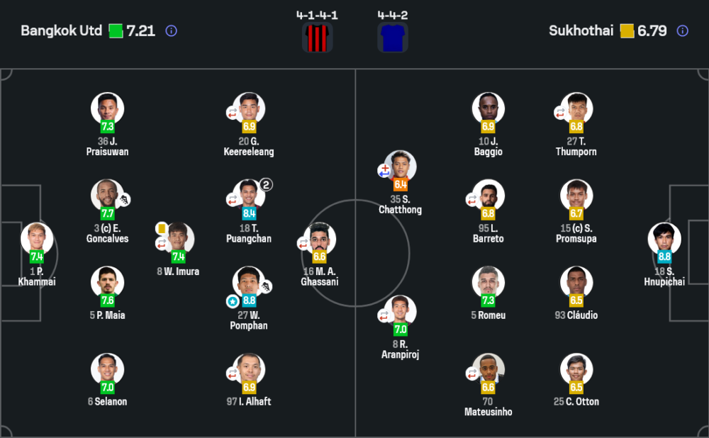 - เปลี่ยนตัว : อาร์เธอร์ 6.8 , ริวัลดินโญ่ 6.5 , เนบอยซ่า โคโซวิช 6.3 , ธีรศิลป์ แดงดา 6.6 , พิชญะ คงศรี