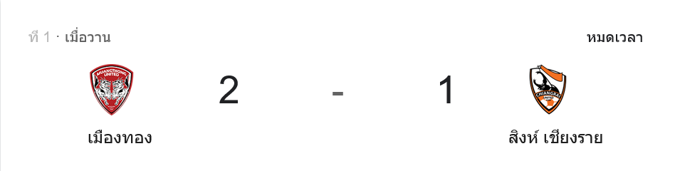 - ⏱ หมดเวลา เมืองทอง ยูไนเต็ด 2-1 เชียงราย ยูไนเต็ด