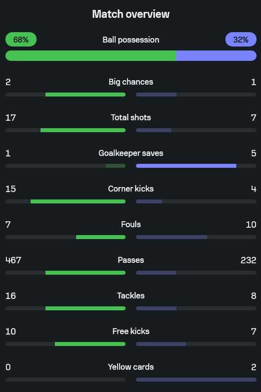 • นักเตะเด่น : นิกา ซานโดคัดเซ 8.0, สารัช อยู่เย็น 7.9, พาตริก กุสตาฟส์สัน 7.7