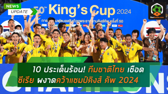 ทีมชาติไทยทำให้แฟนบอลทั้งประเทศได้เฮลั่นกันอีกครั้ง เมื่อพวกเขาสามารถคว้าถ้วยแชมป์ คิงส์ คัพ ครั้งที่ 50 มาครองได้สำเร็จ ด้วยฟอร์มการเล่นที่แข็งแกร่งและน่าประทับใจ พวกเขาเอาชนะซีเรีย ทีมที่มีอันดับ ฟีฟ่า แรงกิ้ง สูงกว่า ด้วยสกอร์ 2-1 ซึ่งนอกจากจะเป็นชัยชนะที่สวยงามแล้ว ยังเป็นการแสดงให้เห็นถึงพัฒนาการที่ยอดเยี่ยมของทีมชาติไทยภายใต้การคุมทัพของ มาซาทาดะ อิชิอิ นี่คือ 10 ประเด็นสำคัญที่คุณไม่ควรพลาด!