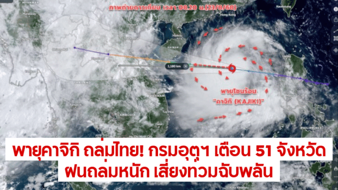 สถานการณ์ล่าสุดจาก กรมอุตุนิยมวิทยา ระบุชัด “พายุคาจิกิ (KAJIKI)” กำลังทวีกำลังแรงขึ้นและส่งผลกระทบโดยตรงต่อหลายพื้นที่ของประเทศไทย โดยเฉพาะ ภาคเหนือ ภาคอีสาน กทม. และปริมณฑล ที่ต้องเตรียมรับมือฝนตกหนักถึงหนักมากในช่วง 24–27 สิงหาคม 2568 นี้ ความเสี่ยงที่จะเกิดน้ำท่วมฉับพลัน น้ำป่าไหลหลาก และดินถล่มเพิ่มสูงขึ้นอย่างมาก