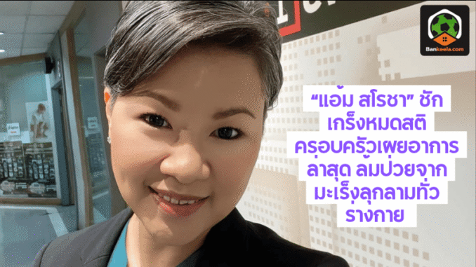 วันที่ 29 กันยายน 2568 วงการข่าวและสังคมไทยต่างสะเทือนใจ หลังแฟนเพจ “สโรชา พรอุดมศักดิ์” ของผู้ประกาศข่าวหญิงชื่อดัง “แอ้ม สโรชา” ได้ออกมาโพสต์แจ้งข่าวด่วนว่า เจ้าตัวมีอาการ ชักเกร็งและหมดสติ จากผลข้างเคียงของ โรคมะเร็งที่ลุกลามหลายจุดทั่วร่างกาย โดยขณะนี้เธอนอนไม่รู้สึกตัวอยู่ที่บ้านตามความประสงค์ส่วนตัว ที่อยากใช้เวลาสุดท้ายท่ามกลางครอบครัวและคนที่รัก