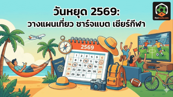 บ้านกีฬาเก็บข้อมูล วันหยุด 2569 มาย่อยให้ครบแบบยาว ๆ จัดเต็มทั้ง วันหยุดราชการ, วันหยุดธนาคาร, ช่วง วันหยุดยาว ข้ามปี ไปจนถึงทริควางแผนลาพักร้อนให้คุ้มที่สุด ใครอยากเตรียมทริปปีใหม่ เที่ยวสงกรานต์ หรือล็อกคิวเชียร์บอลทัวร์ใหญ่ระดับโลก ปีนี้คือปีที่ต้องวางเกมให้ดีตั้งแต่ตอนนี้เลย
