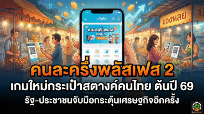 รัฐบาลกำลังจะกดปุ่มปล่อยมาตรการใหญ่ “คนละครึ่งพลัสเฟส 2” เติมเงินเข้ากระเป๋า เป๋าตัง ต้นปี 2569 เป้าคืออัดพลังจับจ่ายให้เศรษฐกิจในประเทศยังคงเดือดต่อเนื่องหลังปีใหม่ โดยคราวนี้ไม่ได้ช่วยแค่คนเมือง แต่ยังหันไปโฟกัสกลุ่มที่เปราะบางจริงๆ ทั้งพื้นที่น้ำท่วม ภาคใต้ และจังหวัดชายแดนกัมพูชาที่มีการสู้รบ บ้านกีฬาเลยพามาไล่ให้ครบทุกมุม ตั้งแต่ “แจกเท่าไหร่ – ใครได้ – ใครหลุด – ต้องเตรียมตัวยังไง” อ่านจบวางแผนรอวันกดสิทธิได้เลย