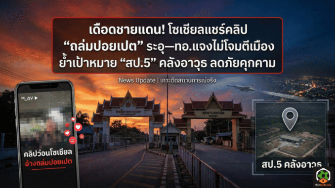 เดือดชายแดน! โซเชียลแชร์คลิป “ถล่มปอยเปต” ระอุ ทอ.แจงไม่โจมตีเมือง ย้ำเป้าหมาย “สป.5” คลังอาวุธ ลดภัยคุกคาม