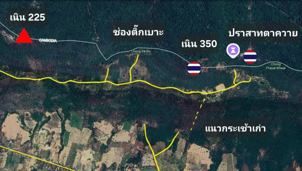อีกมุมที่ทำให้เนิน 225 ถูกจับตา คือการอธิบายเชิงพื้นที่ว่าแถบปราสาทตาควายมี “ช่อง” หรือแนวทางผ่านตามธรรมชาติหลายจุด ไล่เรียงตั้งแต่ช่องตาควาย (จุดตั้งปราสาทตาควาย) ต่อด้วยแนวเนิน 350/ช่องใกล้เคียง ก่อนจะไปถึงแนวเนิน 225 และช่องกร่างฝั่งกัมพูชา
