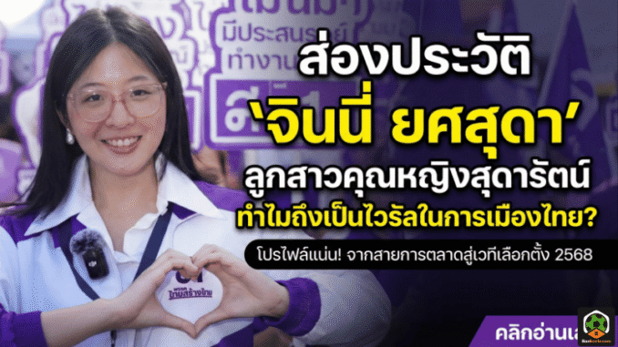 ส่องให้ชัด! จินนี่ ยศสุดา ลีลาปัญญาเลิศ คือใคร? โปรไฟล์แน่น ลูกสาว คุณหญิงสุดารัตน์ ที่กำลังถูกจับตาบนเวทีการเมือง