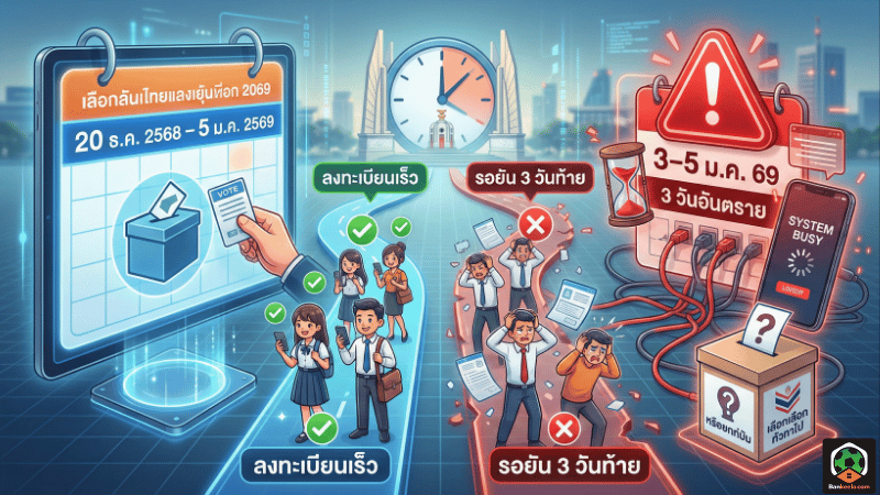 รอบนี้สนามใหญ่ และกับดักมันซ่อนอยู่ในรายละเอียดที่คนส่วนใหญ่เผลอมองข้าม—ความสับสนของช่วงเวลา + ความเสี่ยงระบบล่มในวันท้ายคือสูตรเดิมที่เคยเกิดแล้ว ถ้าคุณเป็นคนทำงานต่างจังหวัด เรียนต่างเมือง หรืออยู่ต่างประเทศ อย่ารอให้ถึง 3–5 ม.ค. 69 แล้วค่อยวิ่งเข้าระบบ เพราะบางครั้ง “ช้าแค่วันเดียว” อาจหมายถึง “พลาดทั้งสิทธิ”