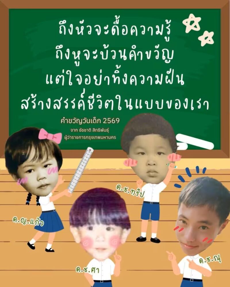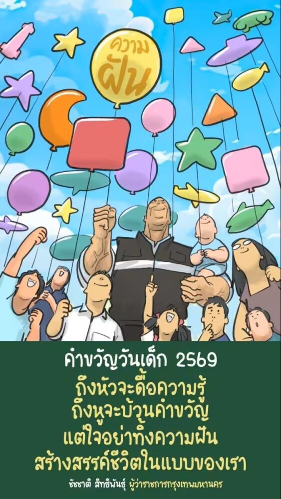 วันที่ 2 มกราคม 2569 นายชัชชาติ สิทธิพันธุ์ ผู้ว่าฯ กทม. โพสต์คำขวัญวันเด็กปีนี้ผ่านเฟซบุ๊กส่วนตัว โดยข้อความเต็มคือ