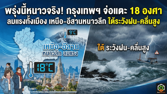 สัญญาณชัดว่าไทยตอนบนหนาวเย็นลงและลมแรงต่อเนื่อง โดยกรุงเทพฯ และปริมณฑลเช้ามีลุ้นต่ำสุดราว 18°C (บางพื้นที่แตะ 17°C แล้ว) ขณะที่เหนือ-อีสานหนาวลึกกว่า และภาคใต้ยังต้องระวังฝนฟ้าคะนองกับคลื่นสูง โดยเฉพาะอ่าวไทยที่แตะ 2-3 เมตร ใครมีแพลนเดินทางช่วง 8-11 ม.ค. แนะนำเช็กพยากรณ์รายวันก่อนออกจากบ้านเสมอ