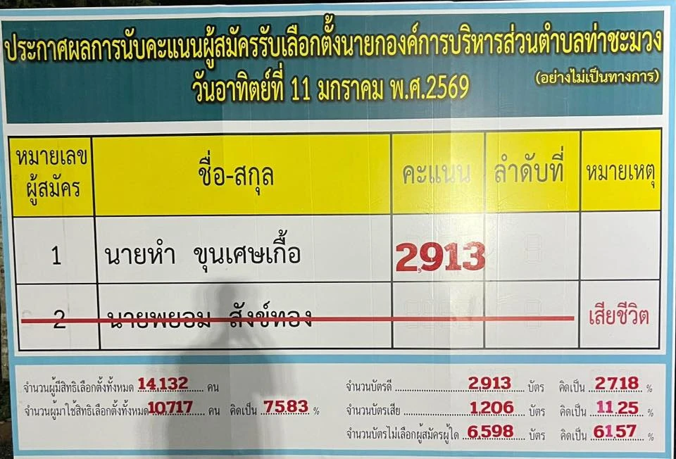 🔥 ท่าชะมวง สงขลา: เมื่อ โหวตโน ชนะขาดเหนือผู้สมัครคนเดียว