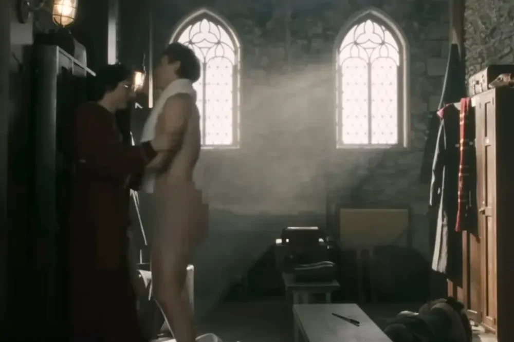 - จากนั้นเสียงดนตรีธีม Harry Potter ถูกตัดทิ้ง เปลี่ยนเป็นธีมดนตรีสุดเร่าร้อนแบบ Heated Rivalry เพื่อบอกคนดูว่า “จากนี้ไม่ใช่เด็กน้อยฮอกวอตส์แล้วนะจ๊ะ”