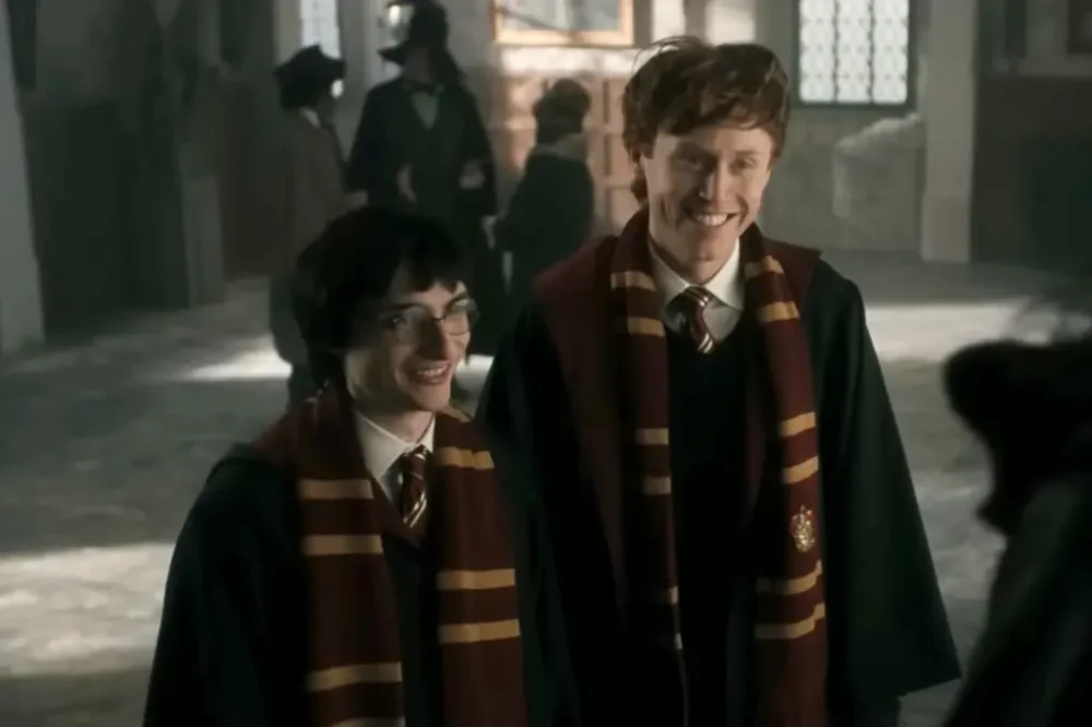 - ฉากแรก แฮร์รี่กับรอนเดินสวนกันในปราสาทฮอกวอตส์ หนังสือร่วงลงพื้น ทั้งคู่ก้มลงเก็บพร้อมกัน มือแตะกันเบาๆ รอนพูดประมาณว่า “นายทำไม้กายสิทธิ์หล่น มันสวยดีนะ” แฮร์รี่ก็ตอบกลับด้วยประโยคเชิงแซวหวานๆ ที่ชัดเจนว่าไม่ได้คุยกันแค่เรื่องอุปกรณ์เวทมนตร์อีกต่อไป