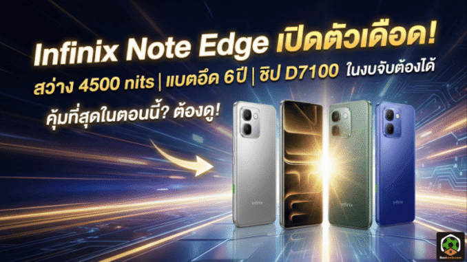 Infinix ปล่อย Infinix Note Edge ออกมาแบบชัดเจนว่า “ตั้งใจชนตลาด” เพราะใส่ของที่คนเล่นมือถือมองหาในยุคนี้มาครบ ทั้งจอโค้งระดับ 1.5K ที่ดันความสว่างได้โหดระดับ 4,500 nits ขอบจอบางสมมาตร 1.87 มม. กระจก Gorilla Glass 7i แบตใหญ่ 6,500mAh และยังเคลมอายุแบตที่อึดจนกล้าพูดคำว่าใช้งานระดับ 6 ปีจากการชาร์จ 2,000 รอบ ในขณะที่ราคาเปิดตัวเริ่มราว 200 ดอลลาร์สหรัฐฯ ซึ่งถือว่าแรงมากเมื่อเทียบกับสิ่งที่ให้มา