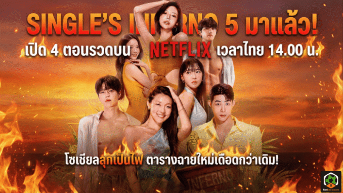 Netflix ปล่อย Single’s Inferno 5 Part 1 ตอน 1-4 พร้อมกันในวันอังคารที่ 20 มกราคม 2026 โดยเวลามาตรฐานคือ 12.00 AM PT และ 3.00 AM ET