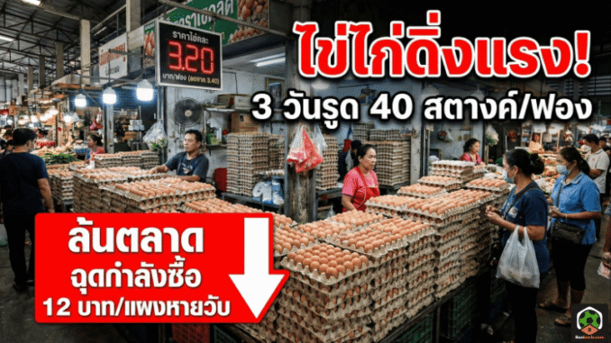 การปรับลดราคาไข่ไก่รวม 40 สตางค์ต่อฟองในเวลาไม่กี่วัน คือภาพสะท้อนชัดของภาวะไข่ล้นตลาดและกำลังซื้อที่ยังไม่ฟื้นเต็มที่ ขณะที่ผู้เลี้ยงรายย่อยกำลังแบกต้นทุนเพิ่มจากมาตรการป้องกันโรคและค่าอาหารสัตว์ จึงเกิดเสียงเรียกร้องให้รัฐตรวจสอบกลไกราคาและดูแลสมดุลตลาดอย่างจริงจัง เพื่อไม่ให้ความผันผวนระยะสั้นลามไปเป็นปัญหาระยะยาวของทั้งอุตสาหกรรม.