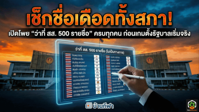 การเมืองไทยหลังวันเลือกตั้งคือสนามแข่งที่ไม่มีเสียงนกหวีดจบง่ายๆ เพราะทันทีที่ผลนับคะแนนเริ่มนิ่งขึ้น รายชื่อ “ว่าที่สมาชิกสภาผู้แทนราษฎร” หรือว่าที่ สส. ทั้งแบบแบ่งเขตและแบบบัญชีรายชื่อ ก็กลายเป็นประเด็นที่คนทั้งประเทศต้องจับตาแบบห้ามกระพริบตา โดยข้อมูลการรายงานล่าสุดระบุว่ามีการสรุปรายชื่อรวม 500 คน แบ่งเป็น สส.แบ่งเขต 400 คน และ สส.บัญชีรายชื่อ 100 คน จากผลนับคะแนนไม่เป็นทางการที่ถูกอัปเดตในช่วงวันที่ 9 กุมภาพันธ์ 2569
