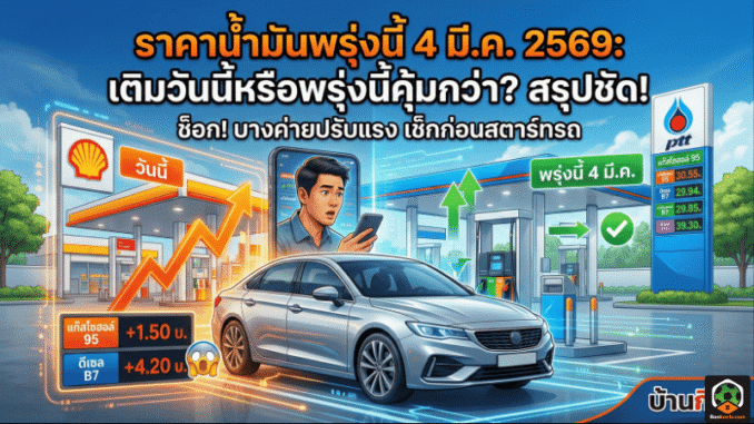 เช้าวันนี้บรรยากาศคนใช้รถในไทยเรียกได้ว่า “สะดุ้งพร้อมกัน” เพราะมีการขยับราคาขายปลีกในบางค่ายแบบแรงพอให้ต้องคิดใหม่เรื่องจังหวะเติมน้ำมันทันที โดยเฉพาะฝั่งเชื้อเพลิงกลุ่มแก๊สโซฮอล์และดีเซลที่กระทบตั้งแต่รถบ้านไปจนถึงรถทำมาหากิน แต่ถ้าคำถามคือ “พรุ่งนี้ 4 มี.ค. 2569 ราคาจะอยู่ที่เท่าไหร่” บ้านกีฬารวบให้ครบ และเล่าให้เข้าใจแบบอ่านจบแล้วตัดสินใจได้เลย