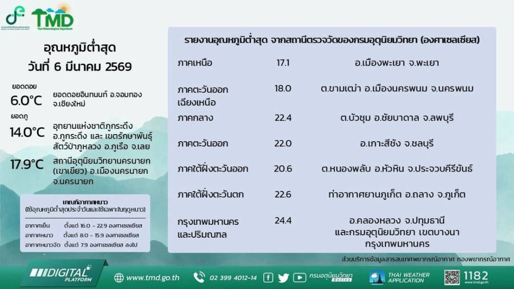 รวมถึงหน้า พยากรณ์อากาศ รายวัน/รายจังหวัด และบริการด้านข้อมูลสภาพอากาศอื่นๆ ที่กรมอุตุฯ รวบรวมไว้
