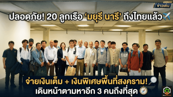 เสียงถอนหายใจของครอบครัวดังขึ้นพร้อมกันที่สนามบินสุวรรณภูมิ เมื่อเช้าวันที่ 16 มีนาคม 2569 – หลังเหตุระทึกกลางทะเลจากกรณีเรือสินค้าไทย “มยุรี นารี” เจอเหตุโจมตีในย่าน ช่องแคบฮอร์มุซ จนทั้งประเทศตามลุ้นกันเป็นวันๆ ล่าสุดลูกเรือไทย 20 คนกลับถึงบ้านแล้วแบบปลอดภัย แต่ภารกิจยังไม่จบ เพราะยังมีลูกเรืออีก 3 คนที่อยู่ในสถานะต้องเร่งติดตามและช่วยเหลืออย่างต่อเนื่อง
