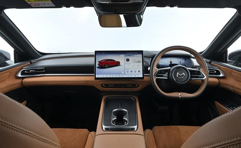 อย่างที่สามคืออุปกรณ์ในห้องโดยสาร ซึ่งมาสด้าใส่มาแบบทันยุค ไม่ได้อนุรักษ์นิยมจนตกขบวน มีทั้งจอสัมผัสกลาง 14.6 นิ้ว จอมาตรวัดดิจิทัล 10.1 นิ้ว AR-HUD ขนาดใหญ่ และระบบชาร์จไร้สาย สิ่งเหล่านี้ทำให้ Mazda 6e ไม่ได้เป็นรถที่ขายดีไซน์อย่างเดียว แต่เป็นรถที่เข้าใจพฤติกรรมผู้ใช้ยุคใหม่ที่ใช้รถเป็นทั้งพื้นที่เดินทางและพื้นที่เชื่อมต่อชีวิตประจำวันไปพร้อมกัน