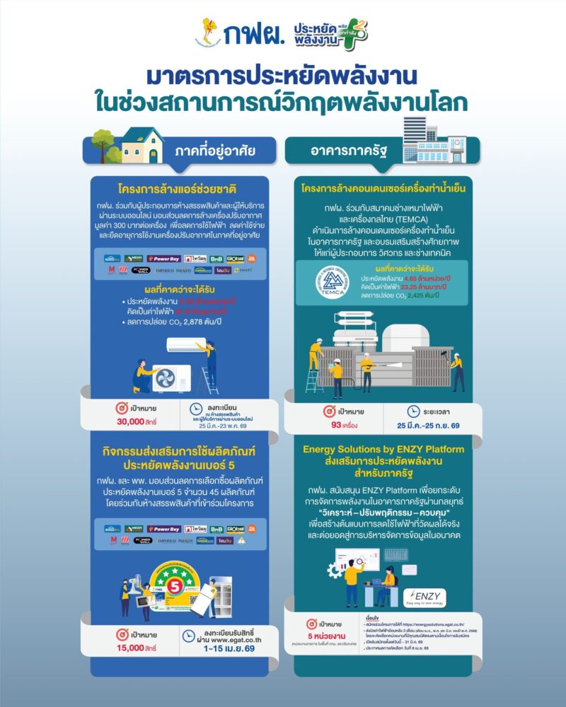 โครงการนี้เป็นมาตรการที่รัฐร่วมกับหน่วยงานด้านพลังงานและภาคเอกชน เพื่อช่วยลดภาระค่าใช้จ่ายของประชาชนในช่วงที่การใช้ไฟฟ้าสูง โดยเฉพาะบ้านที่เปิดแอร์แทบทุกวัน จุดสำคัญคือการให้ส่วนลดค่าล้างแอร์ 300 บาทต่อเครื่องสำหรับผู้ที่เข้าเกณฑ์