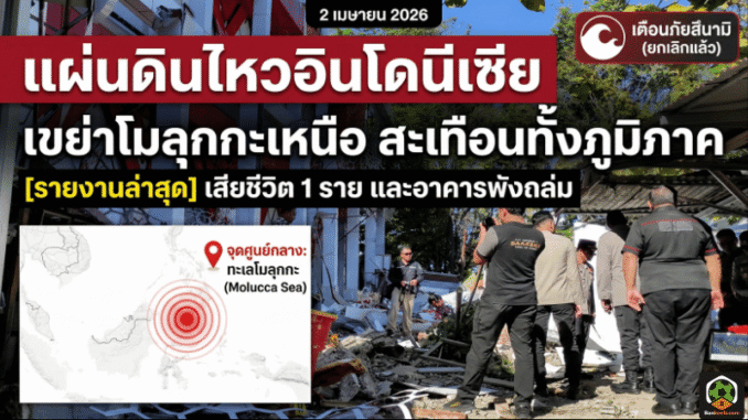 สรุปให้ชัด เหตุ แผ่นดินไหวอินโดนีเซีย ใกล้แตร์นาเตเมื่อ 2 เมษายน 2026 ทำให้มีผู้เสียชีวิต 1 ราย เกิดความเสียหายต่ออาคารหลายแห่ง มีการตรวจพบคลื่นสึนามิขนาดเล็ก และมีการประกาศเตือนสึนามิในช่วงแรกก่อนยกเลิกในภายหลัง ขณะที่อาฟเตอร์ช็อกยังเกิดต่อเนื่อง ทำให้เจ้าหน้าที่เน้นย้ำเรื่องความระมัดระวังอย่างมาก
