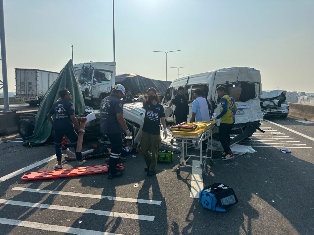 ความน่ากังวลของเหตุการณ์นี้ไม่ได้อยู่แค่ภาพรถที่เสียหายกระจัดกระจายเต็มผิวจราจร แต่ยังรวมถึงรายงานผู้ได้รับบาดเจ็บจำนวนมาก โดยรายงานระยะแรกบางส่วนระบุว่ามีผู้บาดเจ็บ และต่อมามีบางแหล่งรายงานว่าตัวเลขผู้บาดเจ็บมากกว่า 20 ราย สะท้อนให้เห็นว่านี่ไม่ใช่อุบัติเหตุเล็กน้อย แต่เป็นเหตุใหญ่ที่กระทบทั้งความปลอดภัยและระบบจราจรของเส้นทางหลักสายตะวันออกอย่างชัดเจน